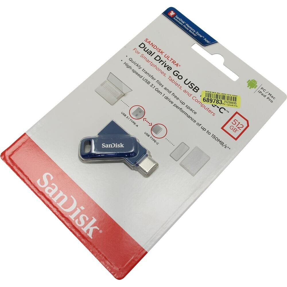 USB-флеш накопитель SanDisk 512Gb Ultra Dual Drive Go USB Type-C 3.1 150MB/s, синий SDDDC3-512G-G46NB, 1шт.