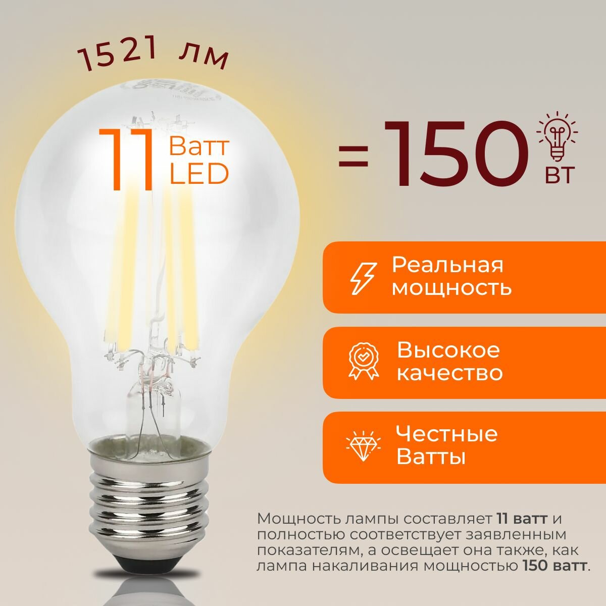 Отзывы на Светодиодная лампочка OSRAM E27 11 Ватт 2700К филаментная теплый белый свет CL груша 230V LED 827, 11W, 1521lm, набор 10шт.