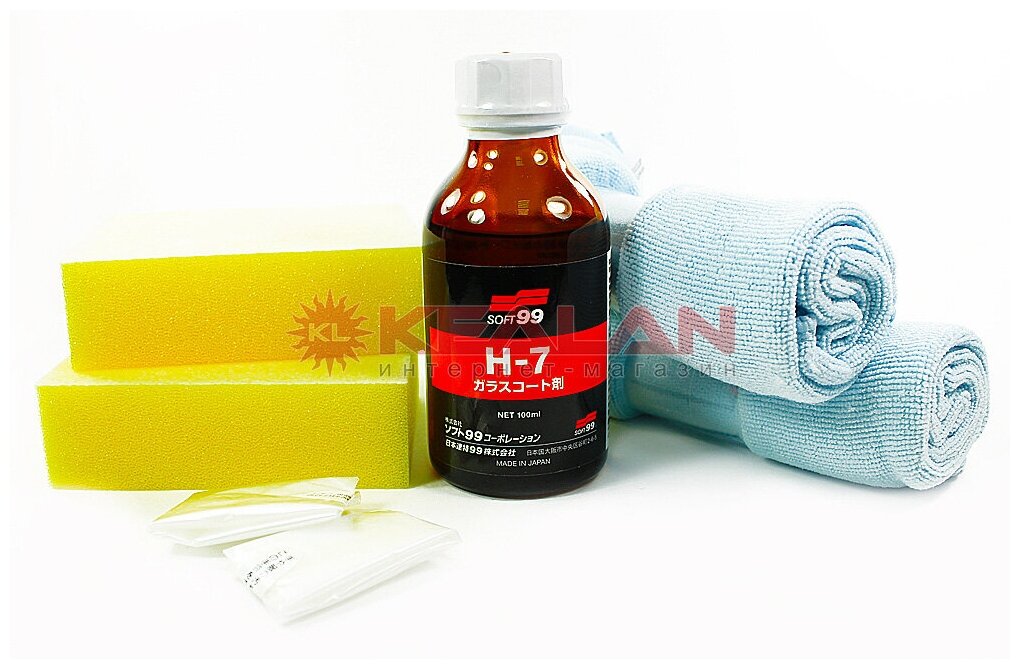 Защитное покрытие кузова (жидкое стекло) Soft 99 H-7 Glass Coating, с диоксидом кремния, с водоотталкивающим эффектом, флакон 100мл, (+2 губки и салфетки, перчатка), арт. 10088 4 799 ₽