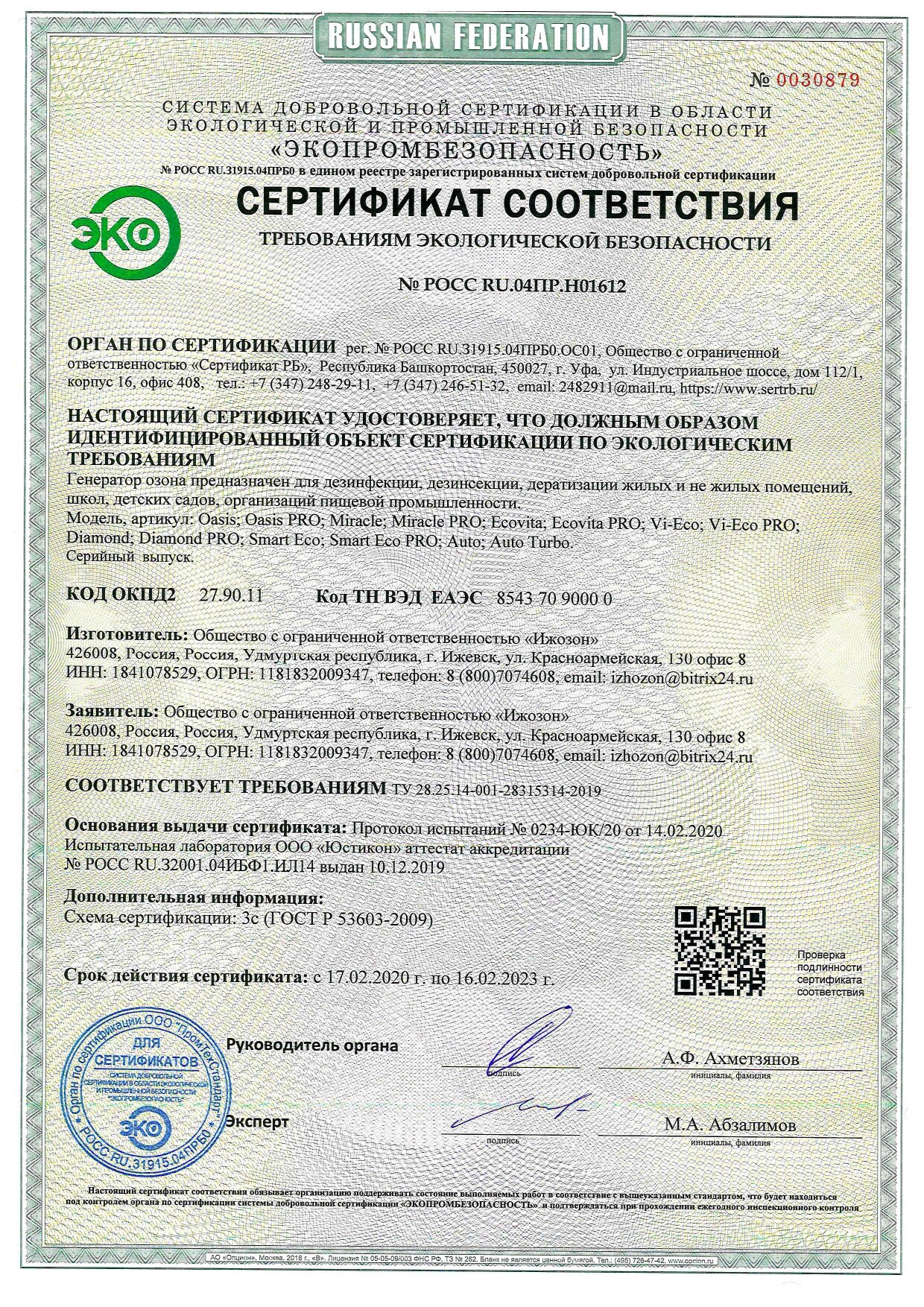 | Тип | озонатор |