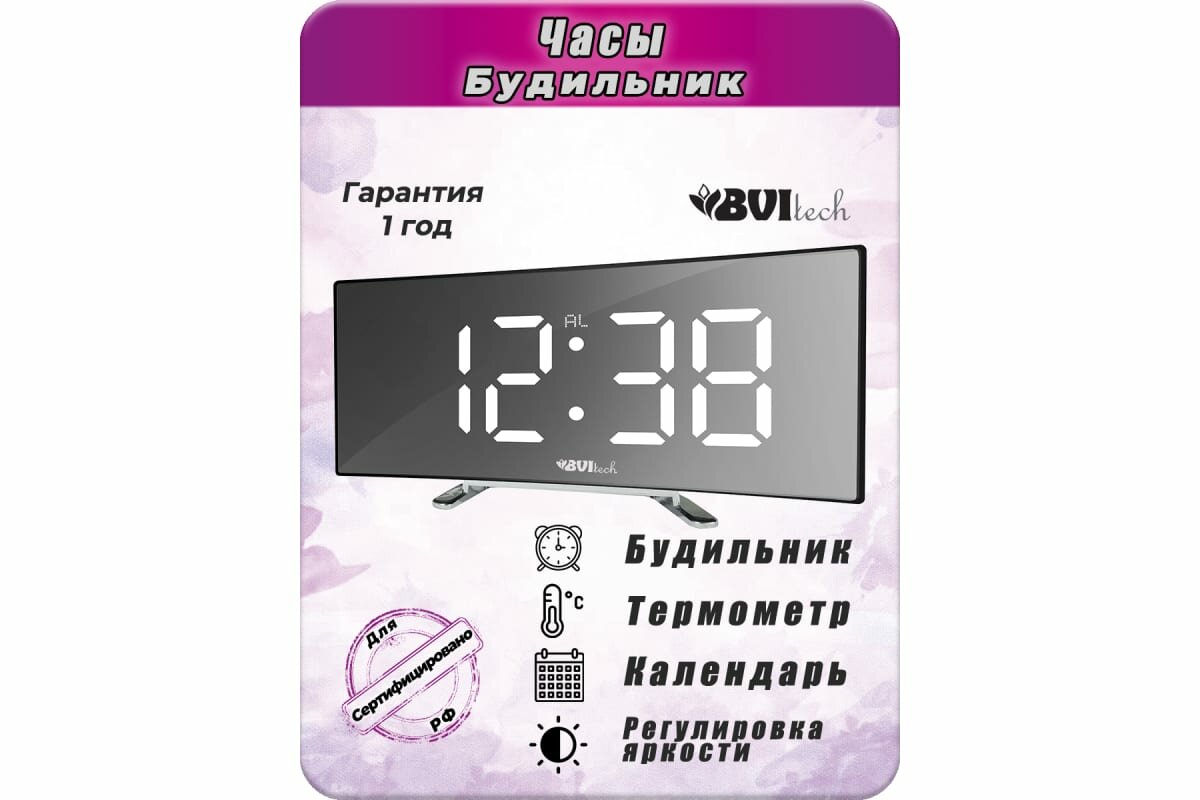 Электронные часы с будильником и термометром BVItech BV-412WMK, черный/белый