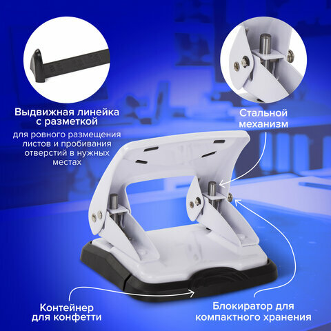 Дырокол для бумаги / листов канцелярский металлический Brauberg Pn-150m, до 35 листов, белый 393 ₽
