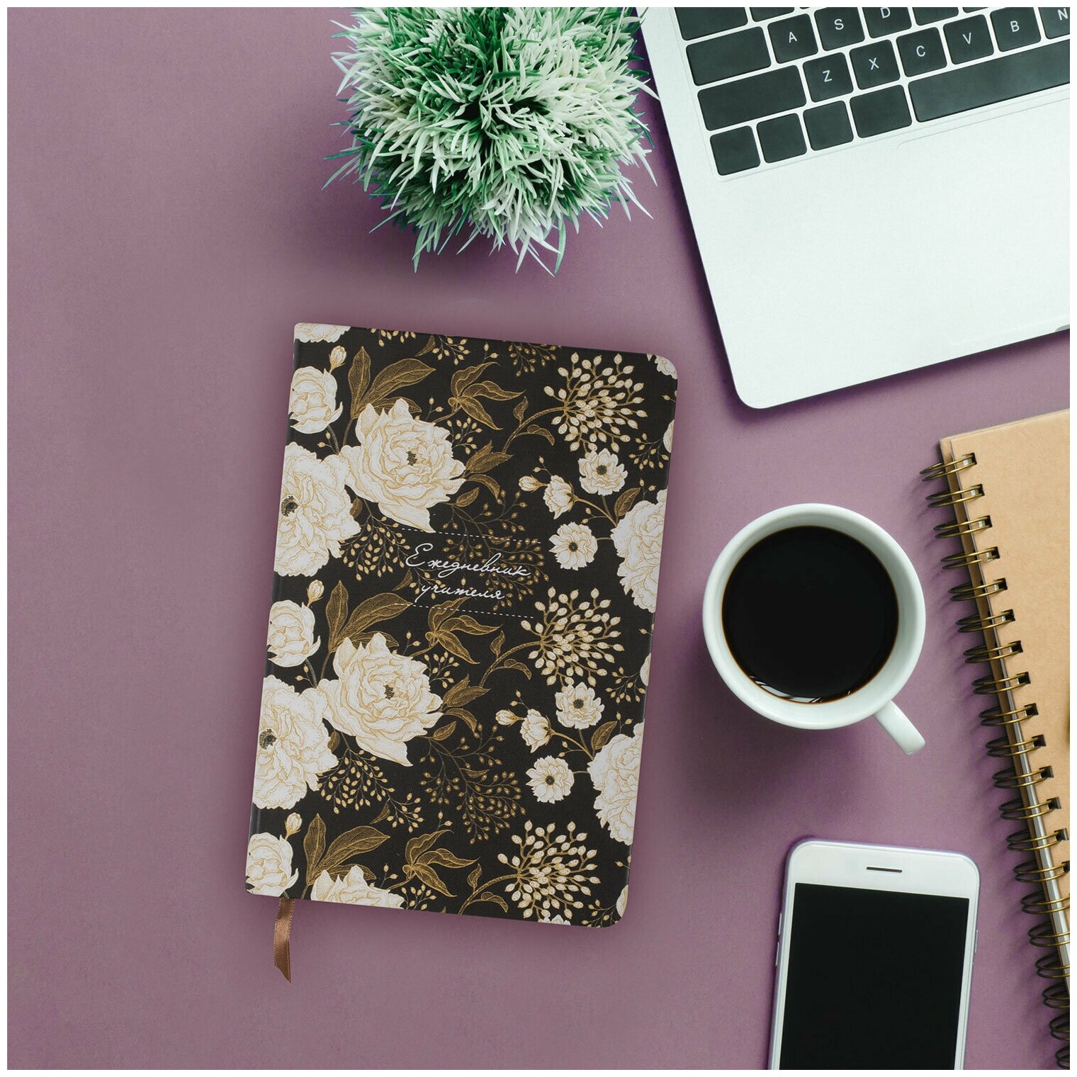 Ежедневник учителя специализированный А5 (215х145 мм) BRAUBERG, 144 л., кожзам, "Цветы на черном", 112707, 112707 724 ₽