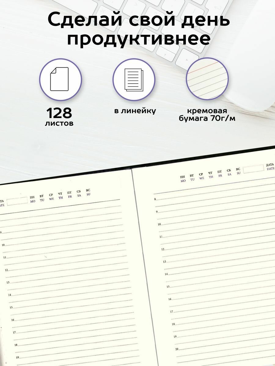 Ежедневник недатированный с ручкой, 128 листов, А5, лавандовый информация: