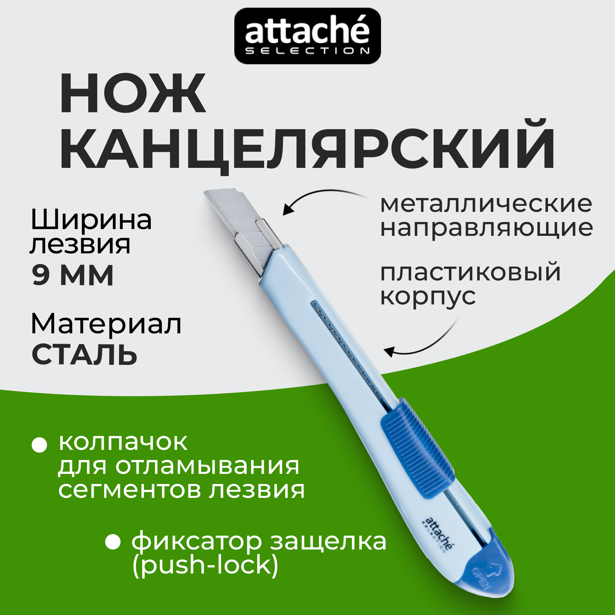 | Дополнительная информация | Нож канцелярский Attache Selection Jolly с фиксатором (ширина лезвия 9 мм) |
