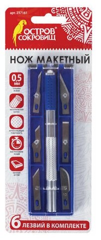 Комплект 6 шт, Нож макетный остров сокровищ, 6 разновидностей лезвий, металл, пластиковый футляр, 237161 информация: