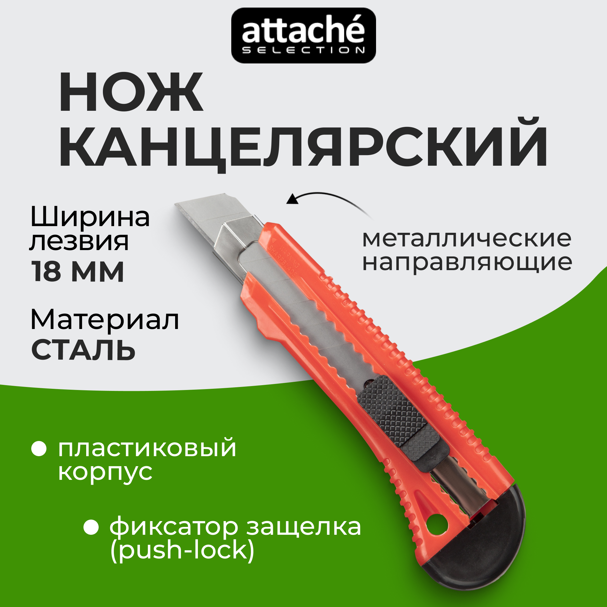 | Дополнительная информация | Канцелярский нож Attache Selection строительный, ширина лезвия 18 мм, с фиксатором |