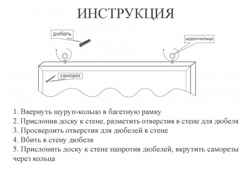 | Комплектация | - доска; - шуруп-кольцо 3.5×45 - 2 шт; - дюбель 6×30 - 2 шт; - шуруп универсал 3,5×40 - 2 шт; - инструкция. |