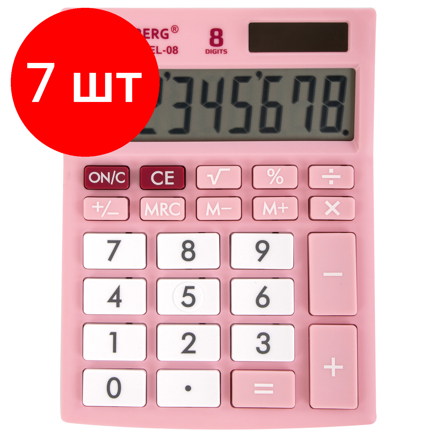 Отзывы на Комплект 7 шт, Калькулятор настольный BRAUBERG ULTRA PASTEL-08-PK, компактный (154x115 мм), 8 разрядов, двойное питание, розовый, 250514