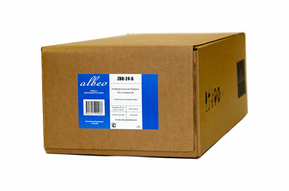 Бумага Albeo InkJet Paper 610мм х 45.7м 80г/м2 втулка 50.8мм для плоттеров 6 рулонов Z80-24-6 4 089 ₽