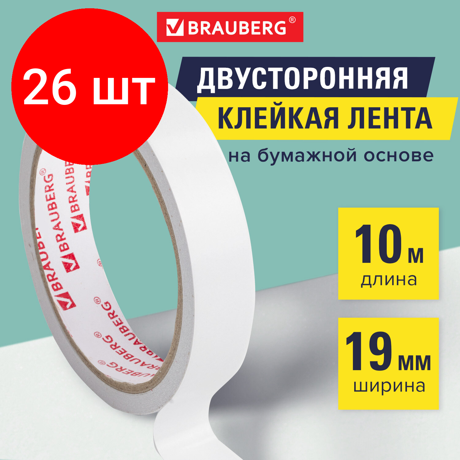 10 цен на Комплект 26 шт, Клейкая двухсторонняя лента 19 мм х 10 м, бумажная основа, BRAUBERG, 227268