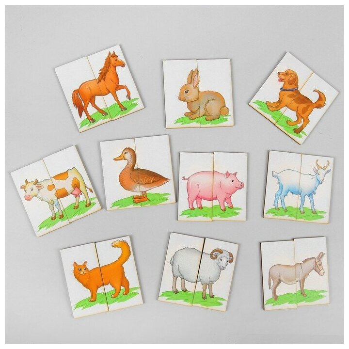 Разрезные картинки-половинки с животными Smile Decor "Ферма", деревянный пазл для детей 548 ₽