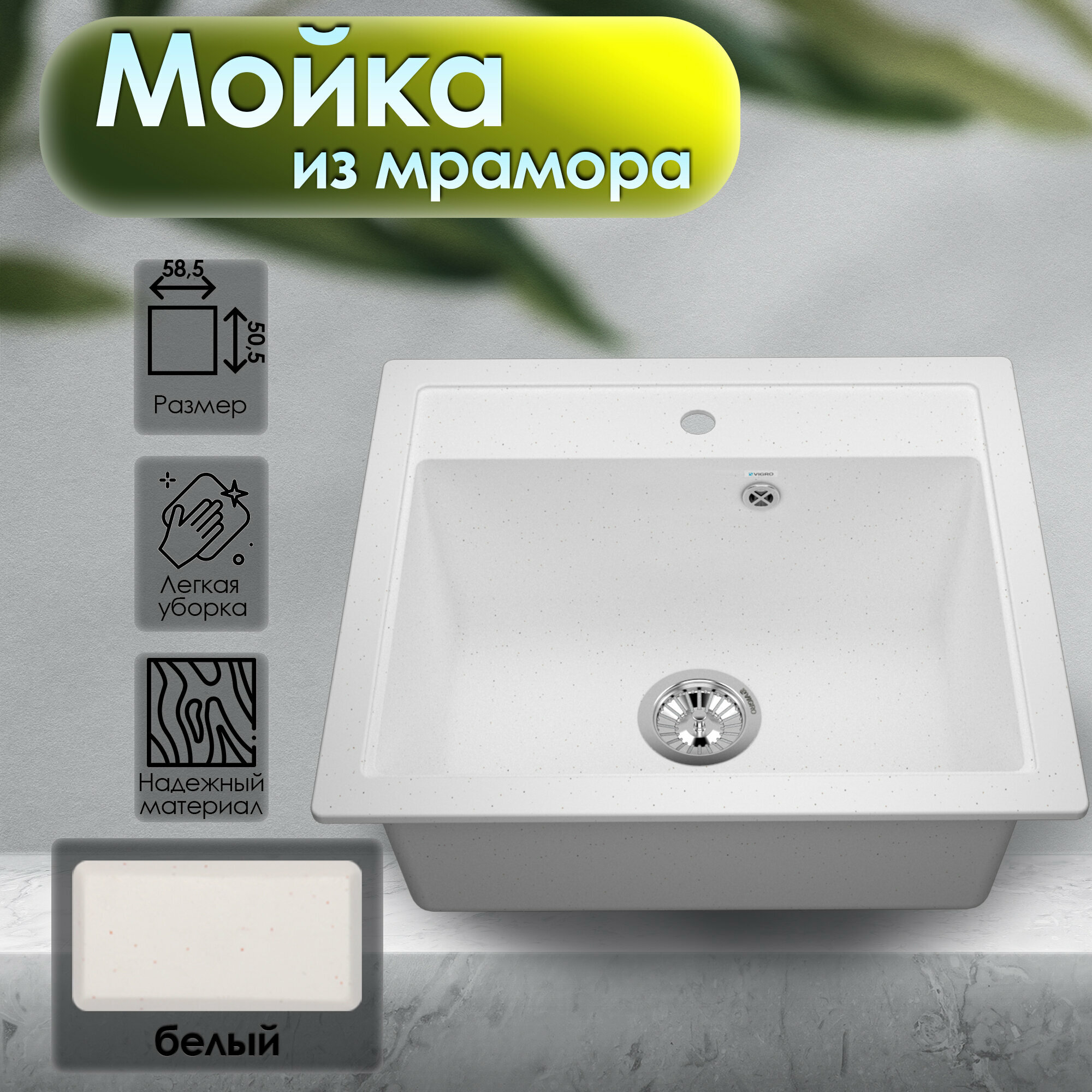 Мойка для кухни VIGRO врезная из искусственного камня (58.5*50.5 см), белый информация: