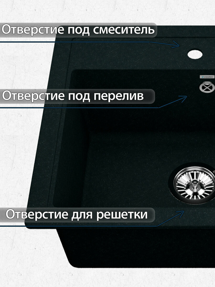 Мойка для кухни VIGRO врезная из искусственного камня (50*56 см), обсидиан информация:
