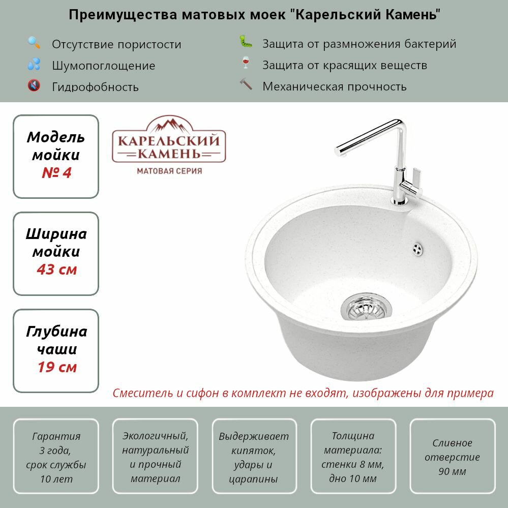 Мойка Раковина для кухни из искусственного камня матовая ТМ Карельский камень (MARRBAXX) Модель 4-G31 Цвет белый матовый 6 400 ₽