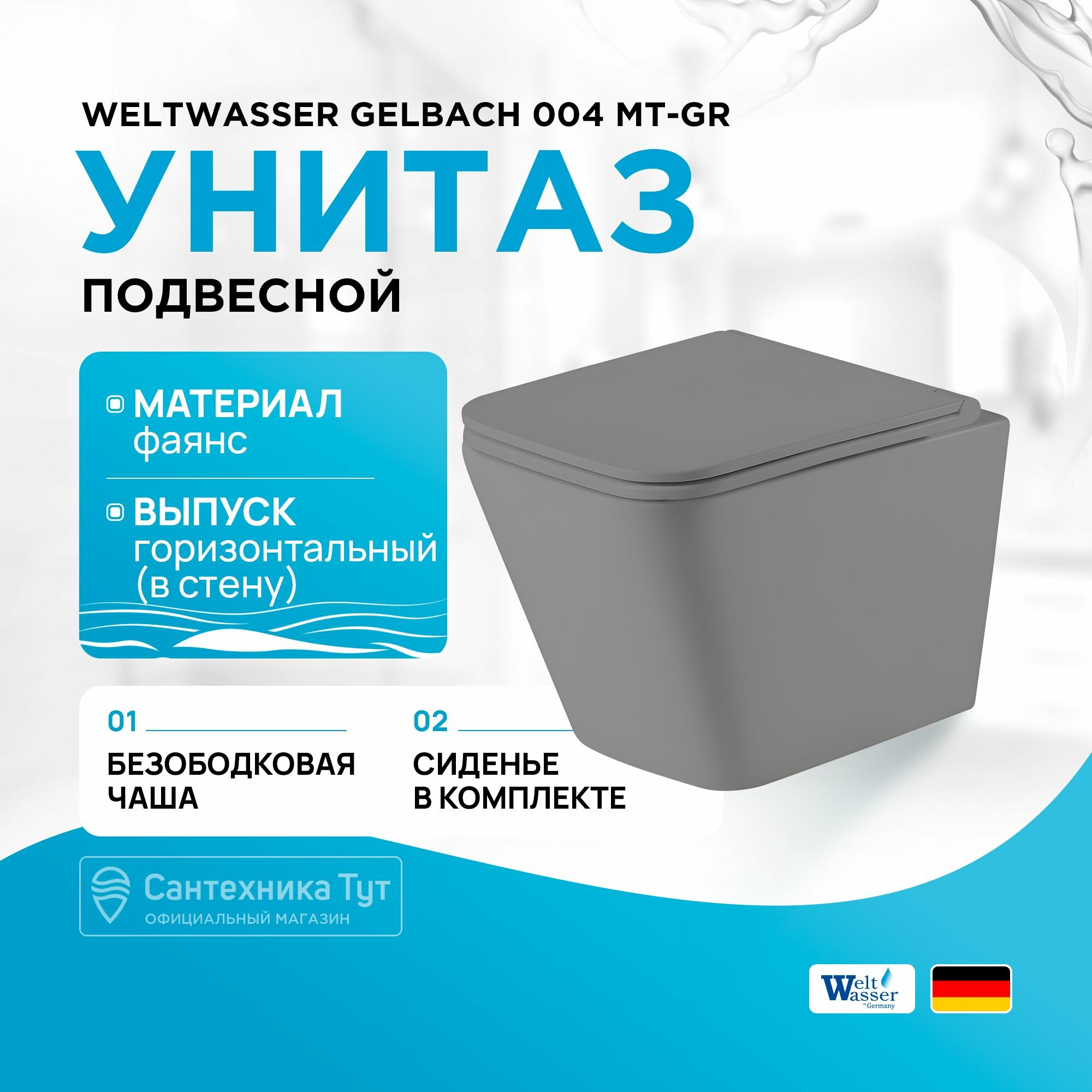 Отзывы на Безободковый подвесной унитаз Weltwasser GELBACH серый матовый , сиденье с микролифтом