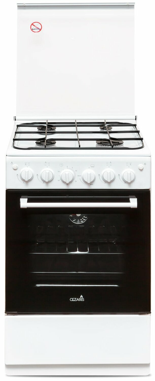 Плита Cezaris ПГ 2150-12, газовая, 4 конфорки, 43 л, газовая духовка, бело-чёрная 9001293 .