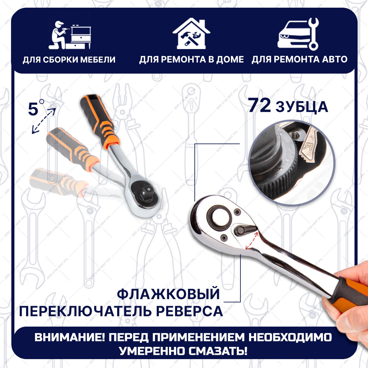 Набор инструментов 141 предмет 1/2" и 1/4" трещотки 72 зубца GOODKING M-10141, набор торцевых головок, комбинированных ключей, tools для дома, для автомобиля информация: