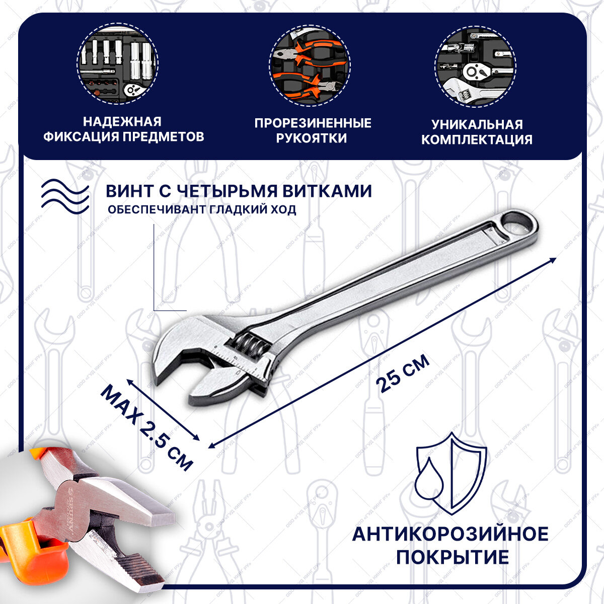 0 отзывов, средняя оценка 0. Чтобы купить «Набор инструментов 141 предмет 1/2" и 1/4" трещотки 72 зубца GOODKING M-10141, набор торцевых головок, комбинированных ключей, tools для дома, для автомобиля» по лучшей цене мы сканируем авито, алиэкспресс, маркет, озон, савеловский, плеер, горбушку, беру, официальные сайты и находим минимальную. Администрация не несет ответсвенность актуальность цен на Набор инструментов 141 предмет 1/2" и 1/4" трещотки 72 зубца GOODKING M-10141, набор торцевых головок, комбинированных ключей, tools для дома, для автомобиля, более подробно узнавайте на сайте магазина.