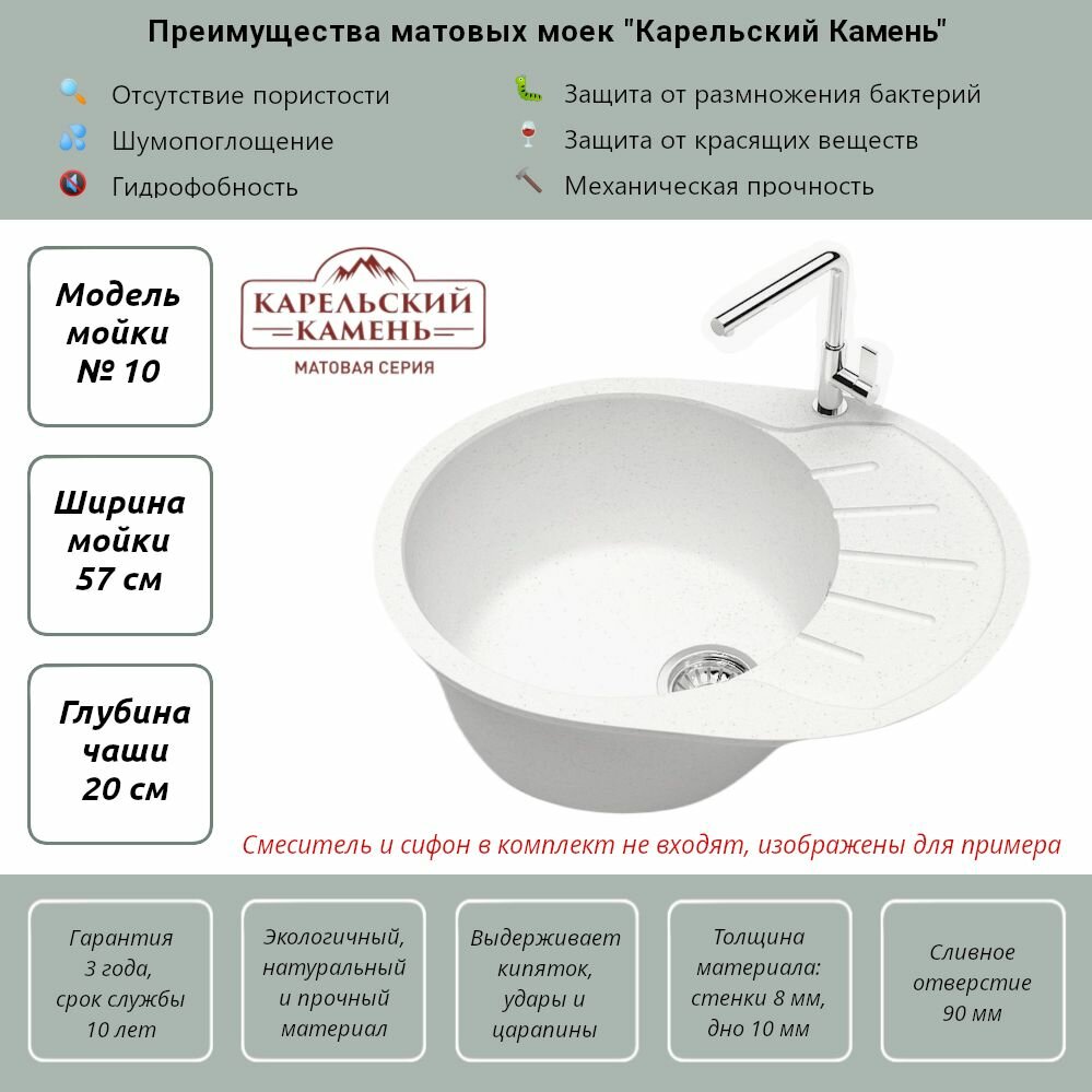Отзывы на Мойка мат. MARRBAXX Модель 10-G31 цвет белый карел.камень Карельский камень (ШЕ)