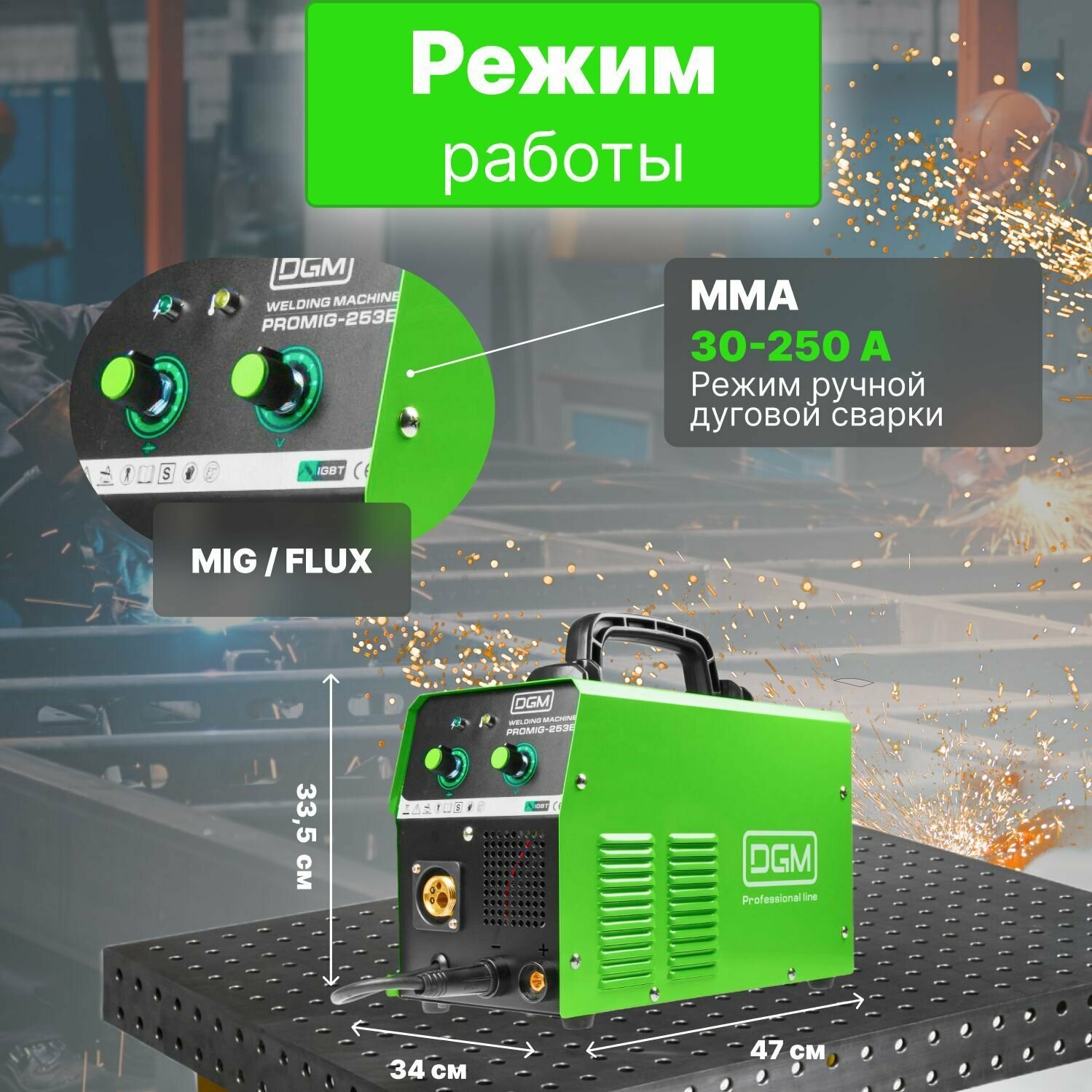 10 цен на Сварочный аппарат инверторного типа DGM Полуавтомат сварочный DGM PROMIG-253E, TIG, MIG/MAG