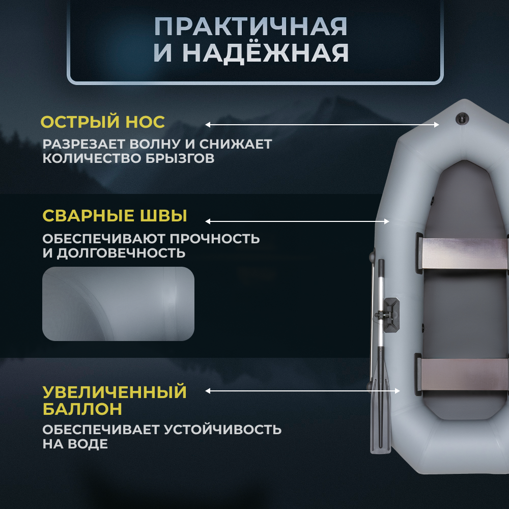 10 цен на Лодка ПВХ под мотор надувная двухместная гребная для рыбалки Magnum PRO 240 серый