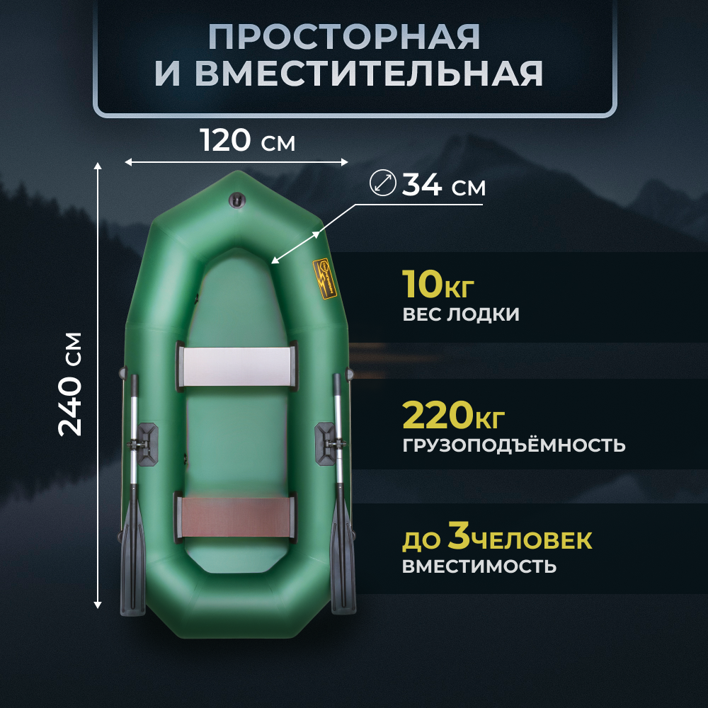 Отзывы на Лодка ПВХ под мотор надувная двухместная гребная для рыбалки Magnum PRO 240 зелёный