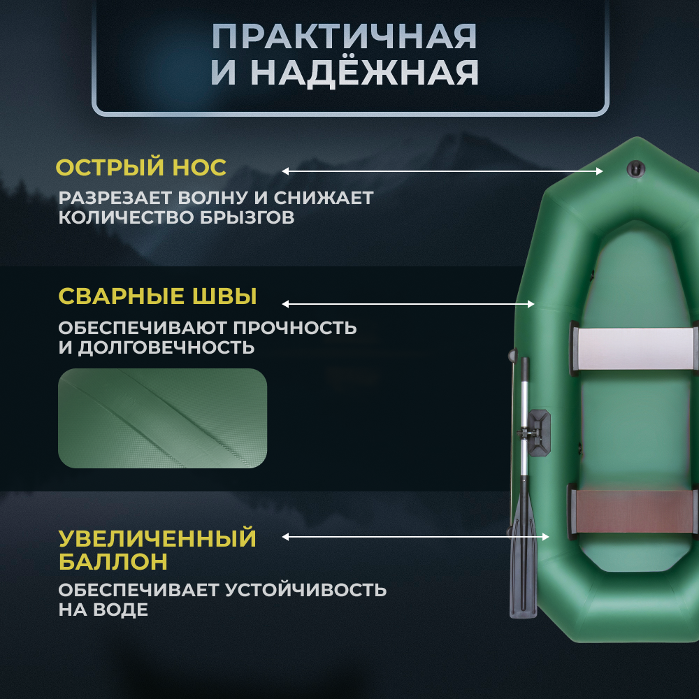 10 цен на Лодка ПВХ под мотор надувная двухместная гребная для рыбалки Magnum PRO 240 зелёный