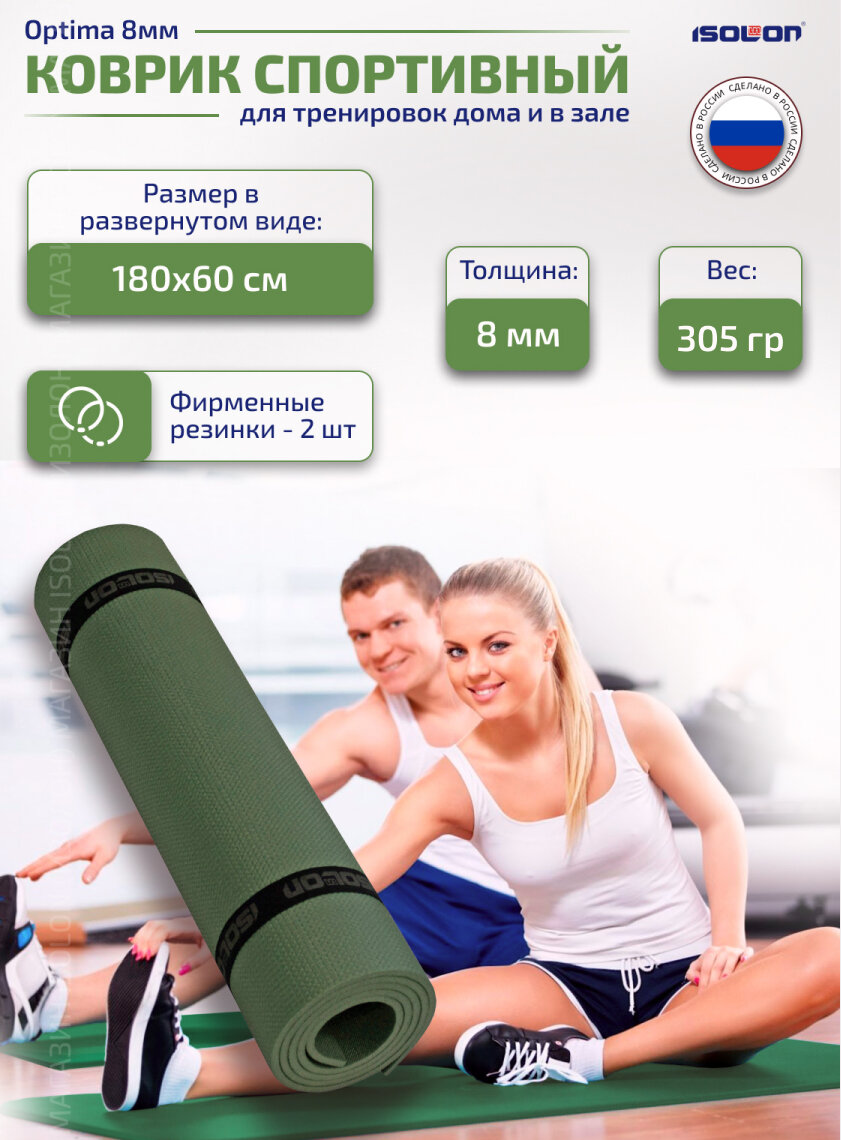 Коврик спортивный и туристический для похода и отдыха ISOLON Optima Light 8, 180х60 см оливковый информация: