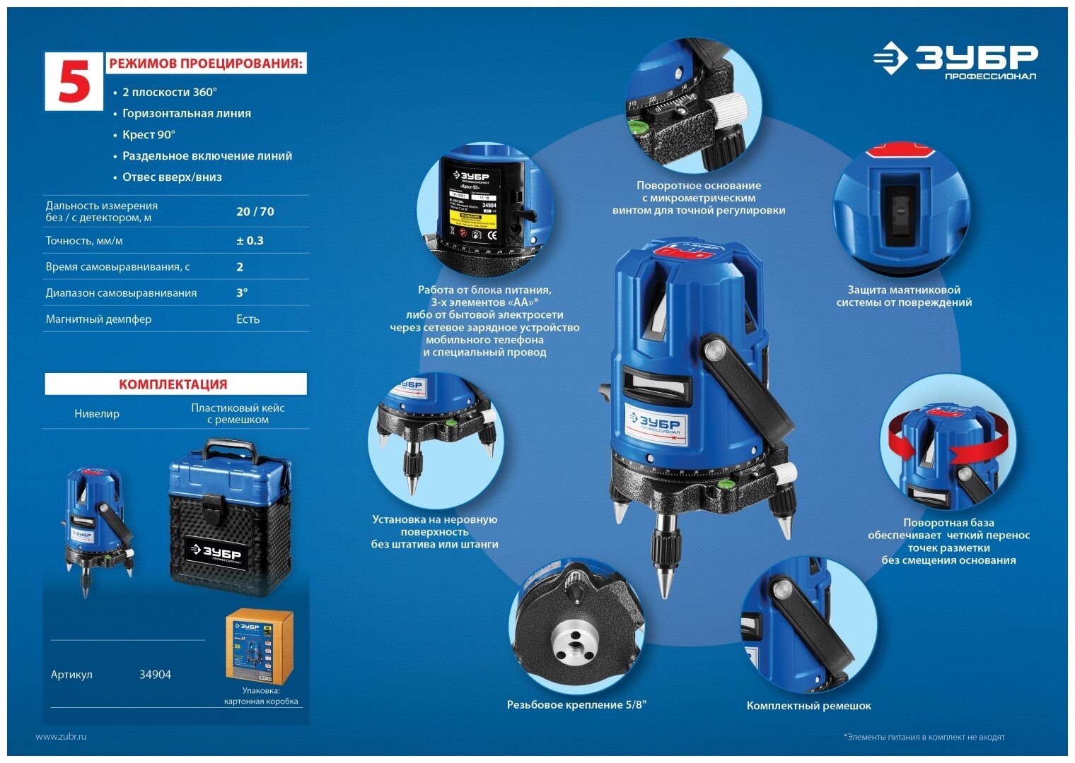 ЗУБР Нивелир лазерный крест, в кейсе 34904 информация: