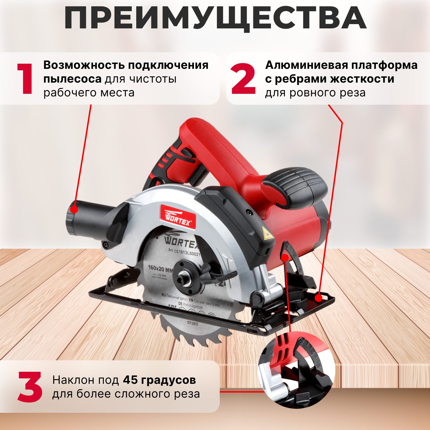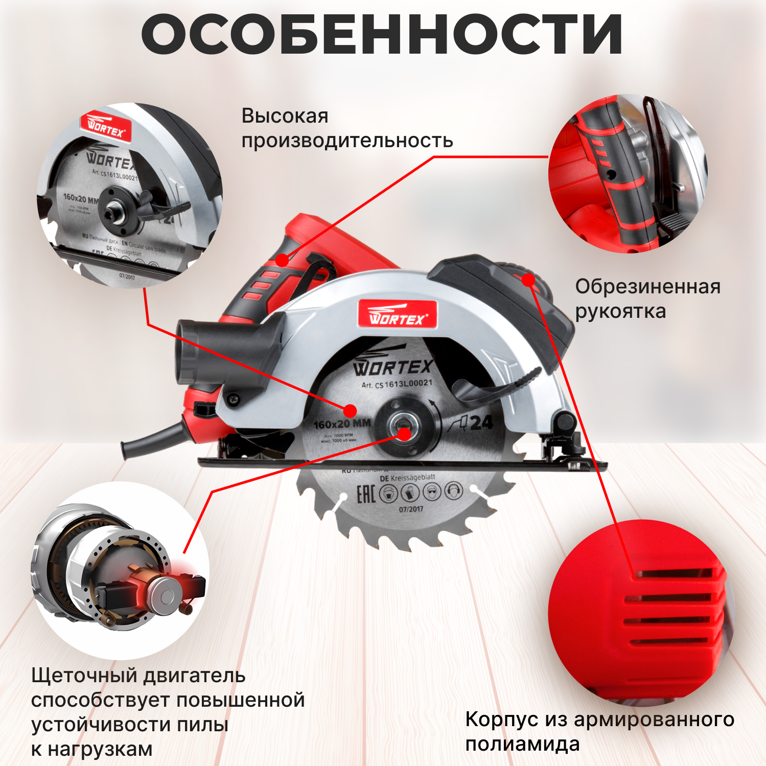 Дисковая пила Wortex Пила циркулярная WORTEX CS 1613 L (CS1613L00021), 1300 Вт 7 097 ₽