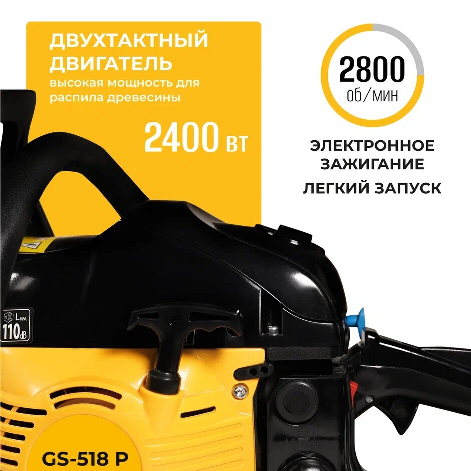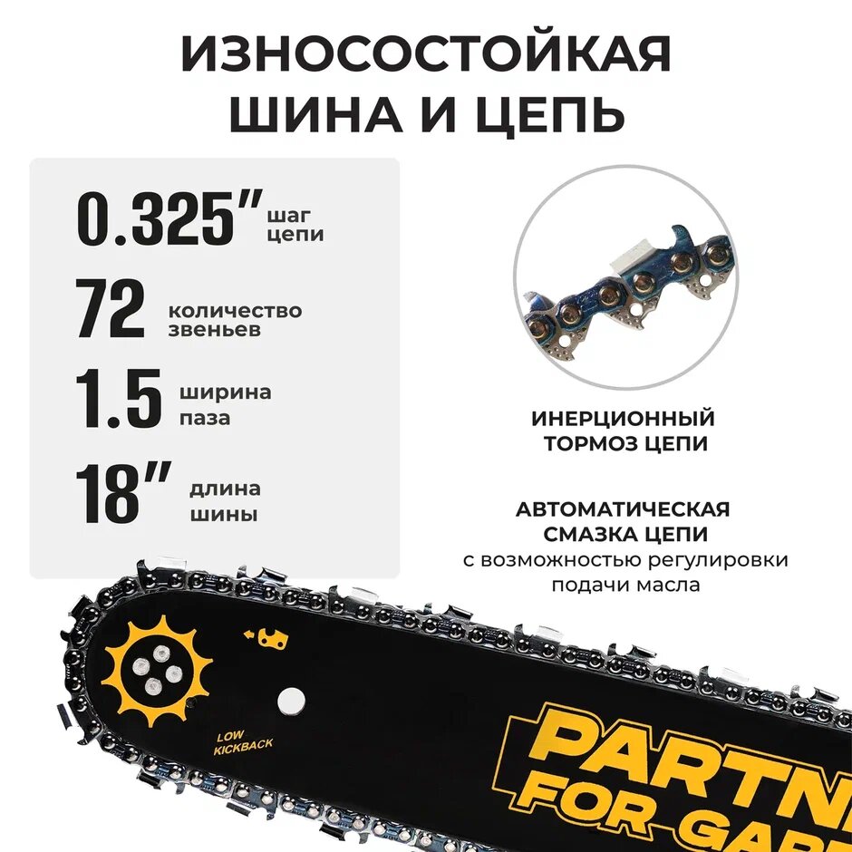 Бензопила цепная / цепная бензиновая пила Partner for Garden GS 518 Р ( 3,5 л.с, мощность 2,4 кВт, длина шины 18" - 45 см ) информация: