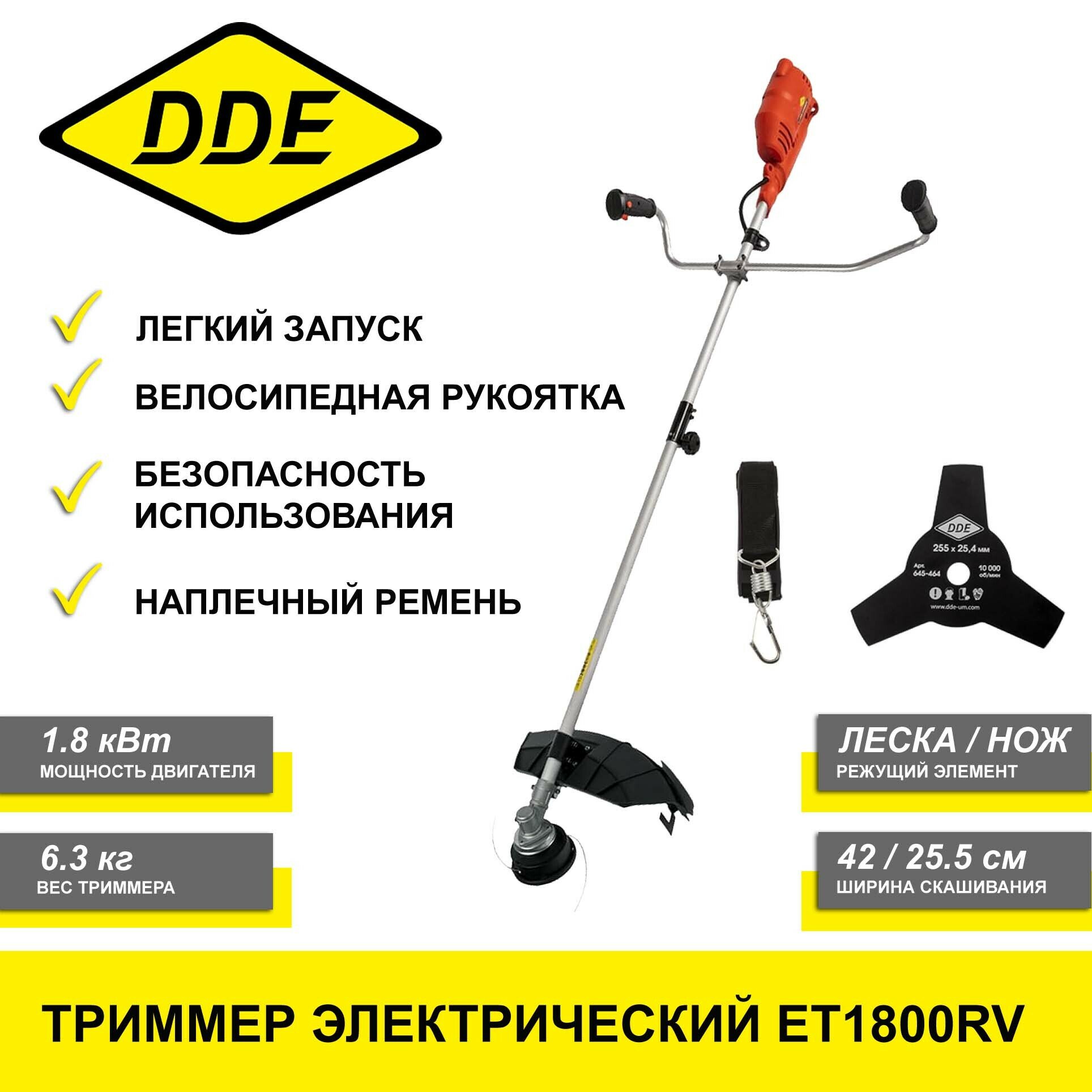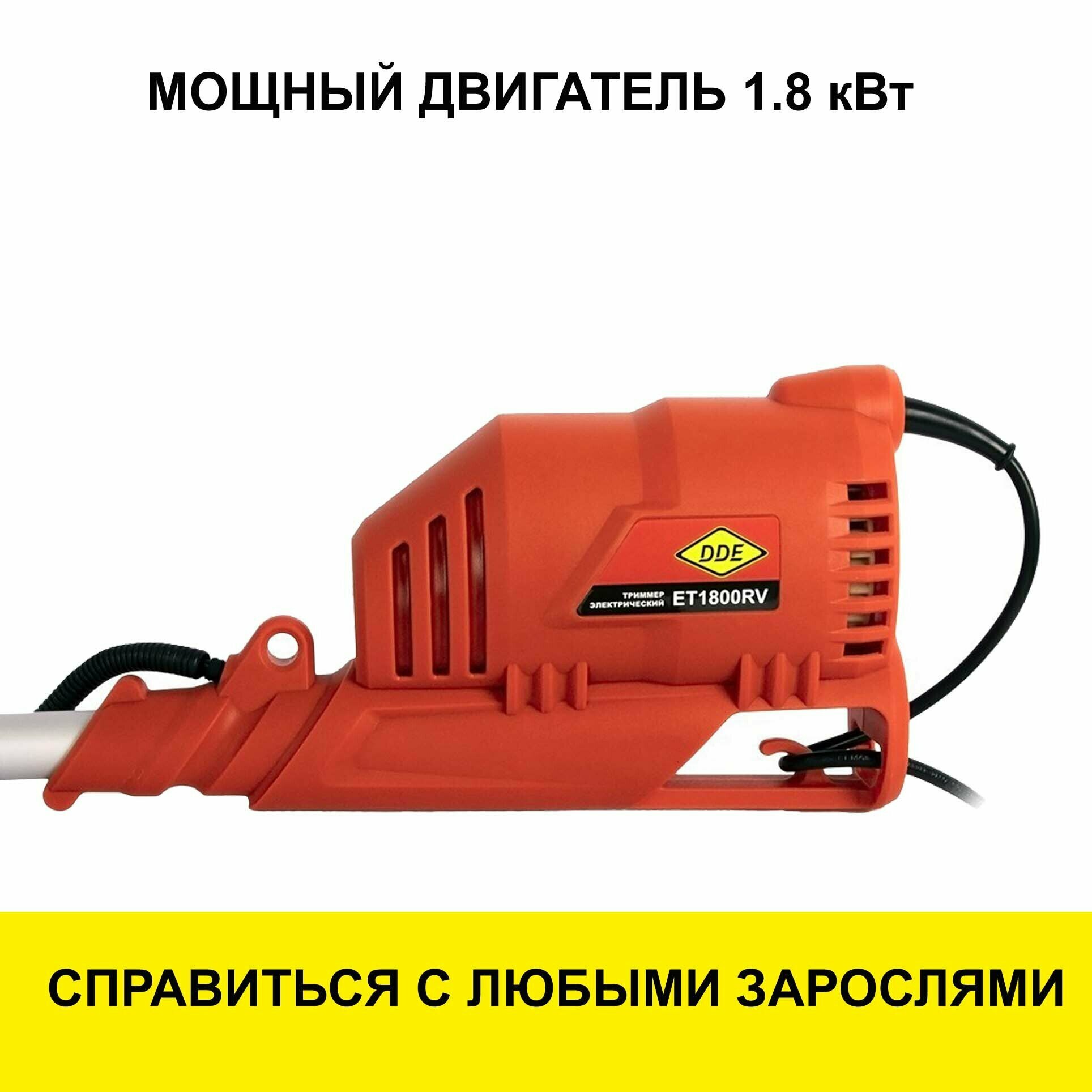 Электрический триммер DDE ЕТ1800RV (1.8кВт, леска-нож) садовая техника для дачи, косилка для газона информация: