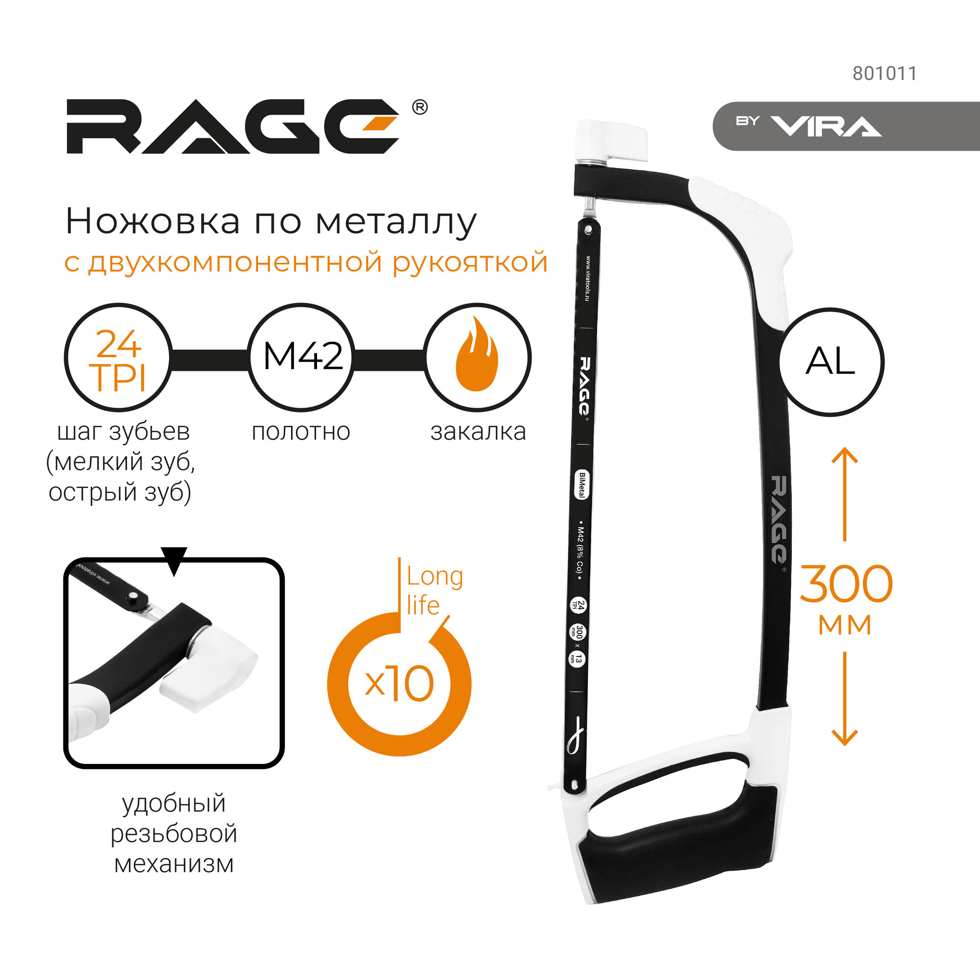 Ножовка по металлу Vira Rage, 300мм (801011)