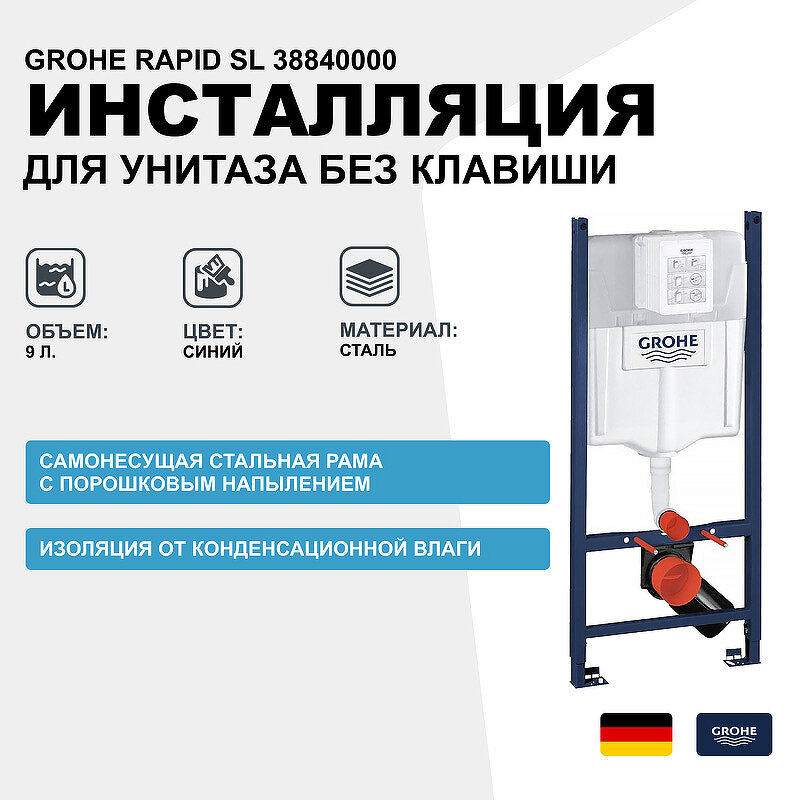 Инсталляция Grohe Rapid SL 38840000 для унитаза без клавиши информация: