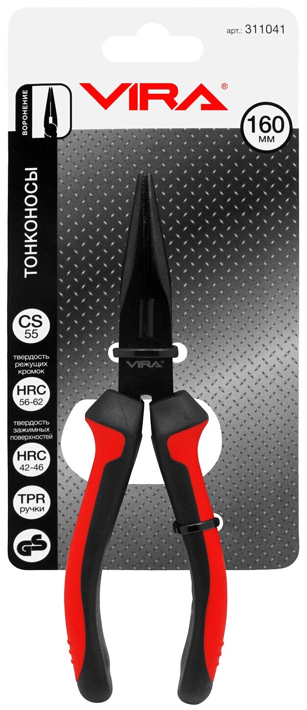 Тонкогубцы 160 мм Vira, двухкомпонентные ручки информация: