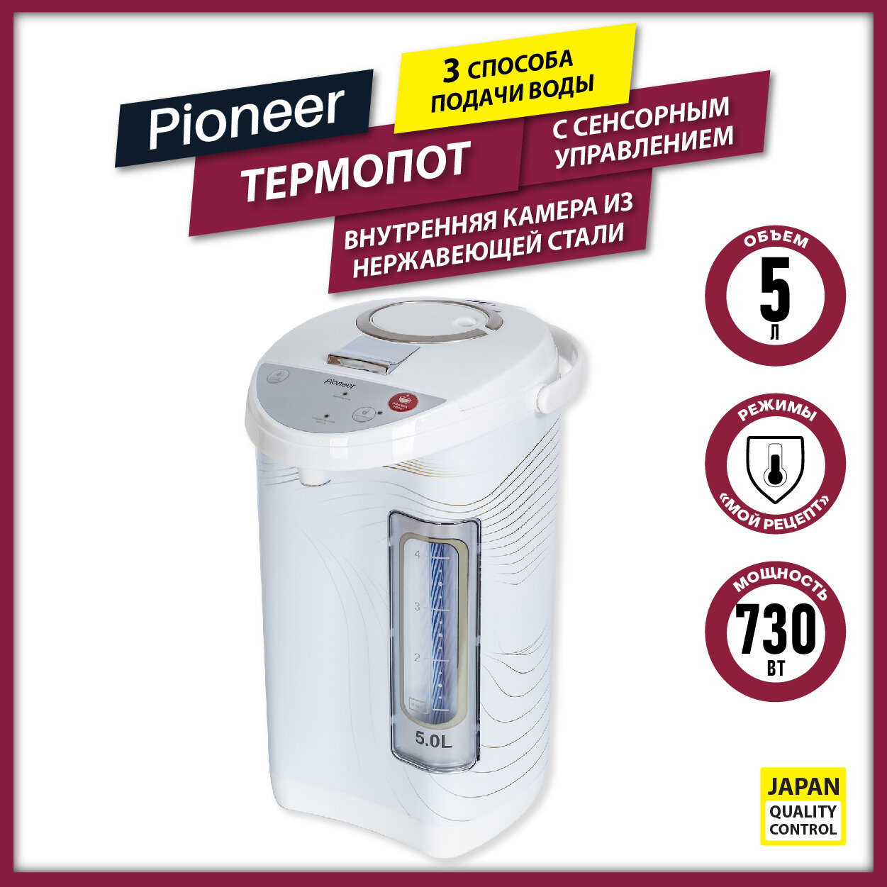 10 цен на Термопот Pioneer TP710 5 литров, с сенсорным управлением, 3 способа подачи воды, индикатор уровня воды, камера из нержавеющей стали 304