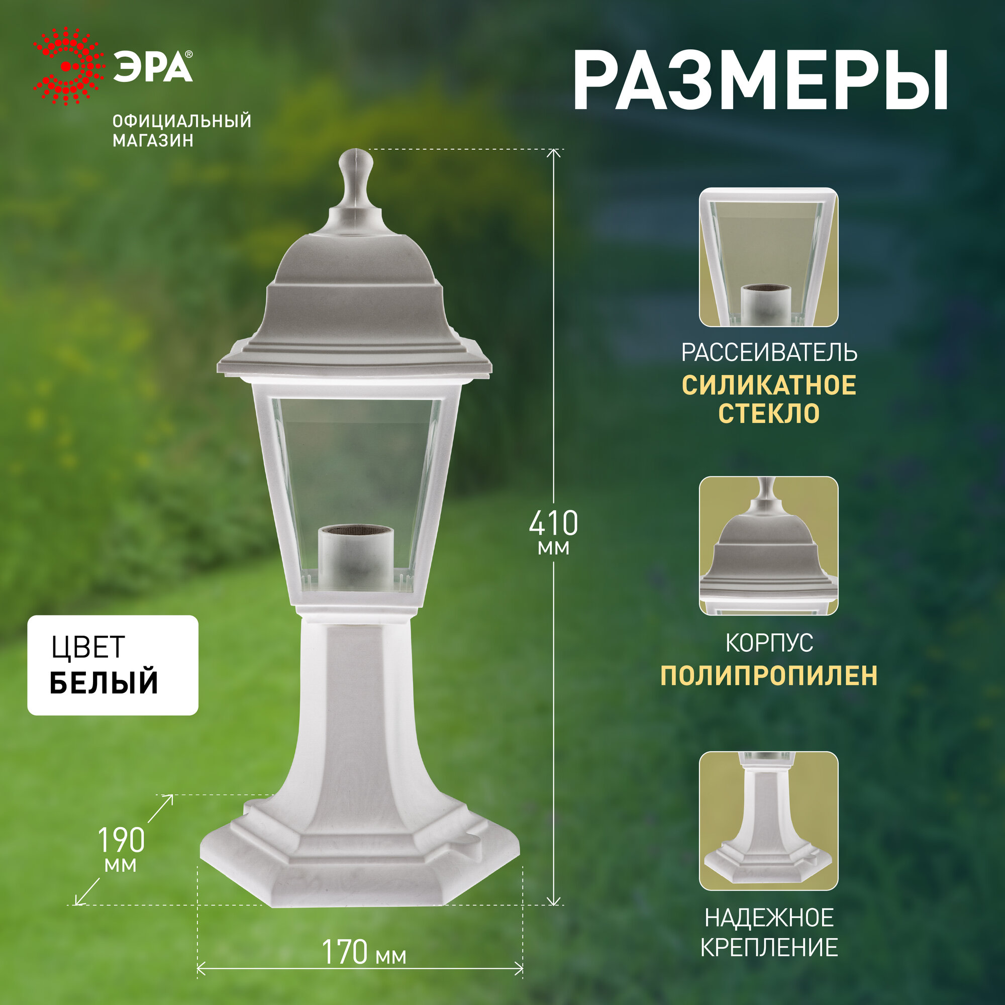 10 цен на Светильник уличный напольный ЭРА НТУ 04-60-001 "Оскар" белый Е27, IP 44