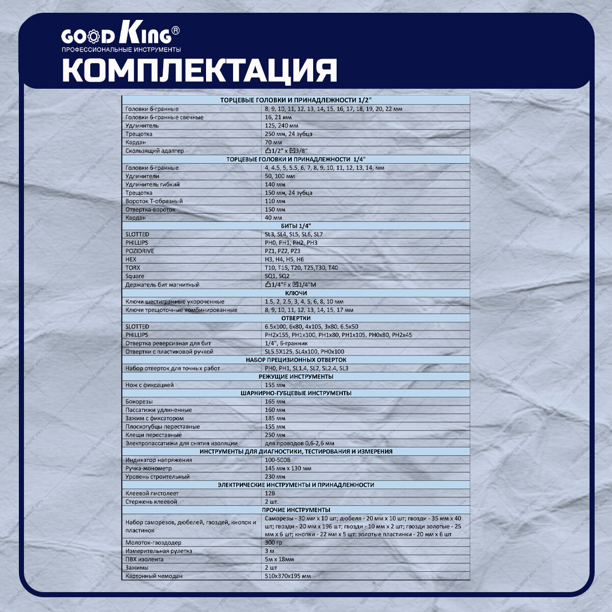Набор инструментов GOODKING B-10399 информация: