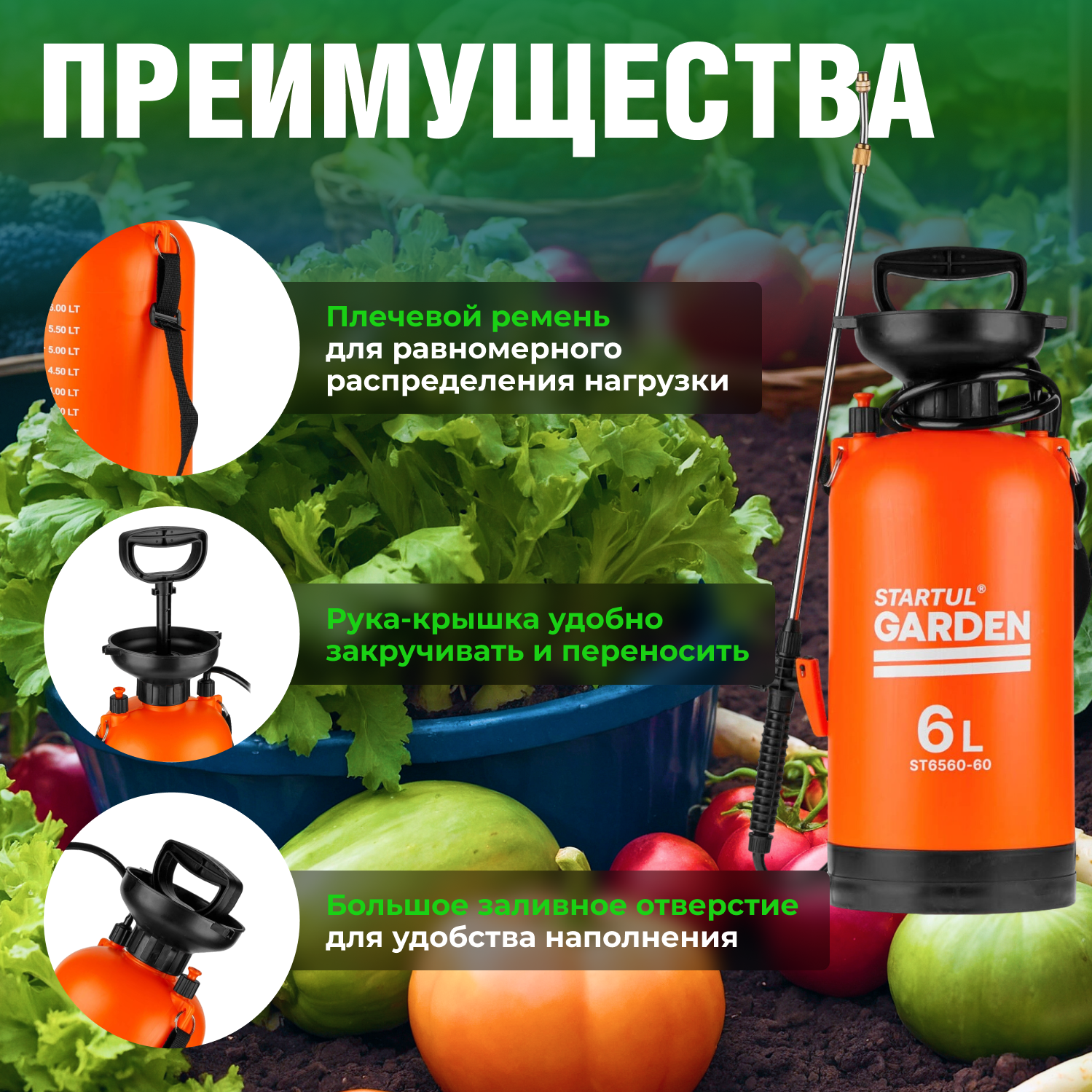 Опрыскиватель садовый, пульверизатор 6л STARTUL GARDEN информация:
