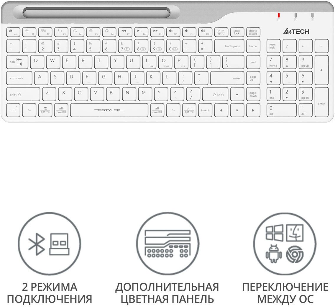 Клавиатура A4TECH Fstyler FBK25, USB, Bluetooth/Радиоканал, белый серый [fbk25 white]