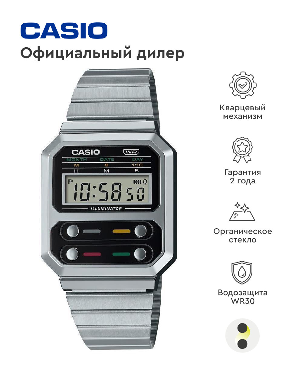 Наручные часы CASIO Vintage A100WE-7B, серебряный, черный