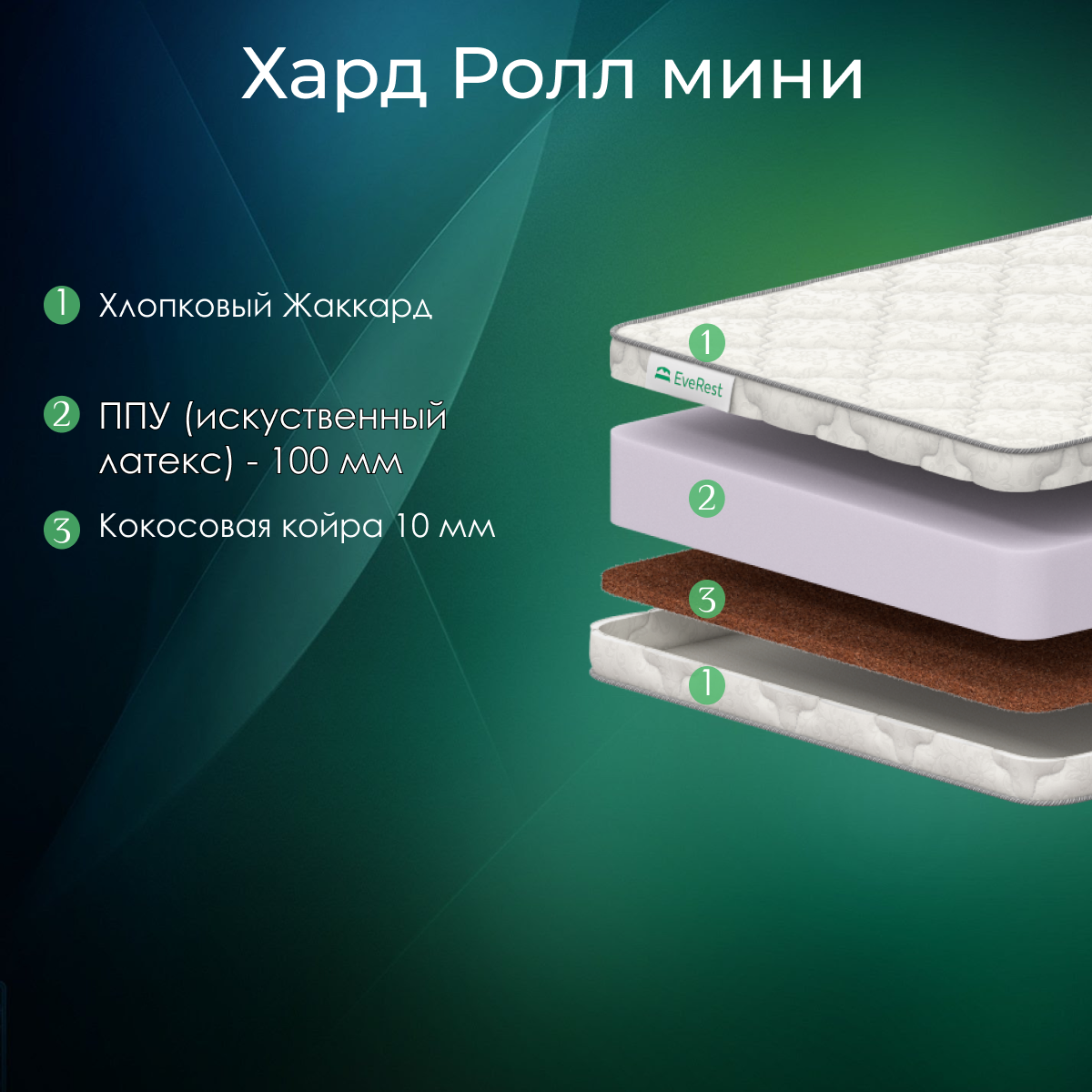 Матрас Everest Хард Ролл Мини пенополиуретан (ппу) h 11 см тонкий поролоновый беспружинный с кокосом в рулоне чехол хлопковый жаккард 165х190 информация:
