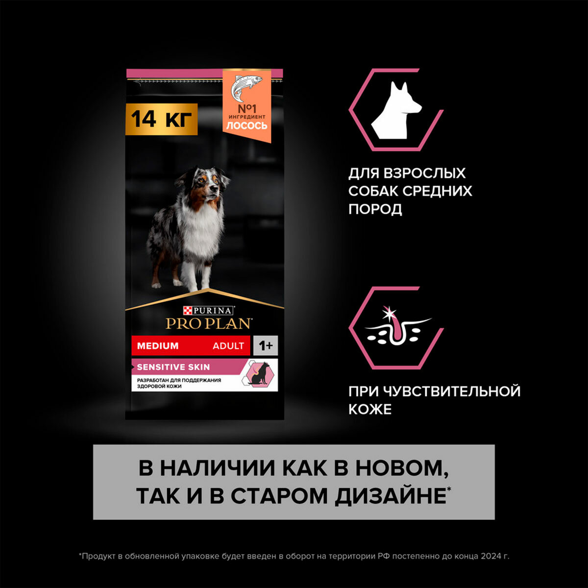 Сухой корм PRO PLAN ADULT DOG MEDIUM SENSITIVE SKIN для взрослых собак средних пород с чувствительной кожей с лососем и рисом (14 + 14 кг) информация: