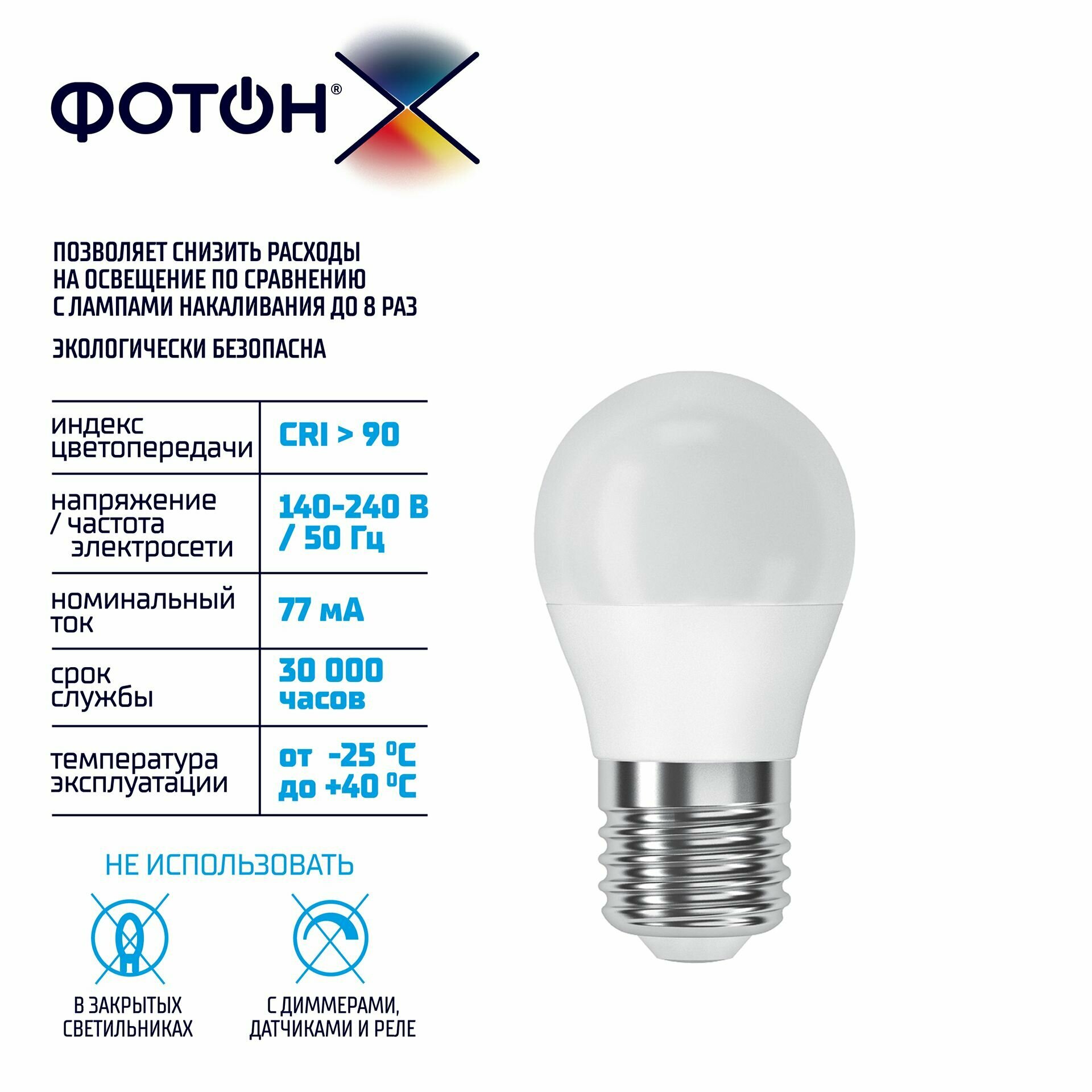10 цен на Лампа светодиодная фотон LED P45-C 8Вт E27 3000K, серия Х