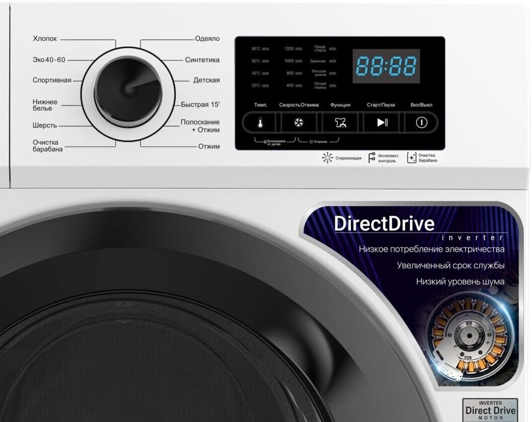 Стиральная машина WILLMARK WMF-6021LG (INVERTER DIRECT DRIVE 6кг/1200 об.,12 реж.,, A+++, белый) информация: