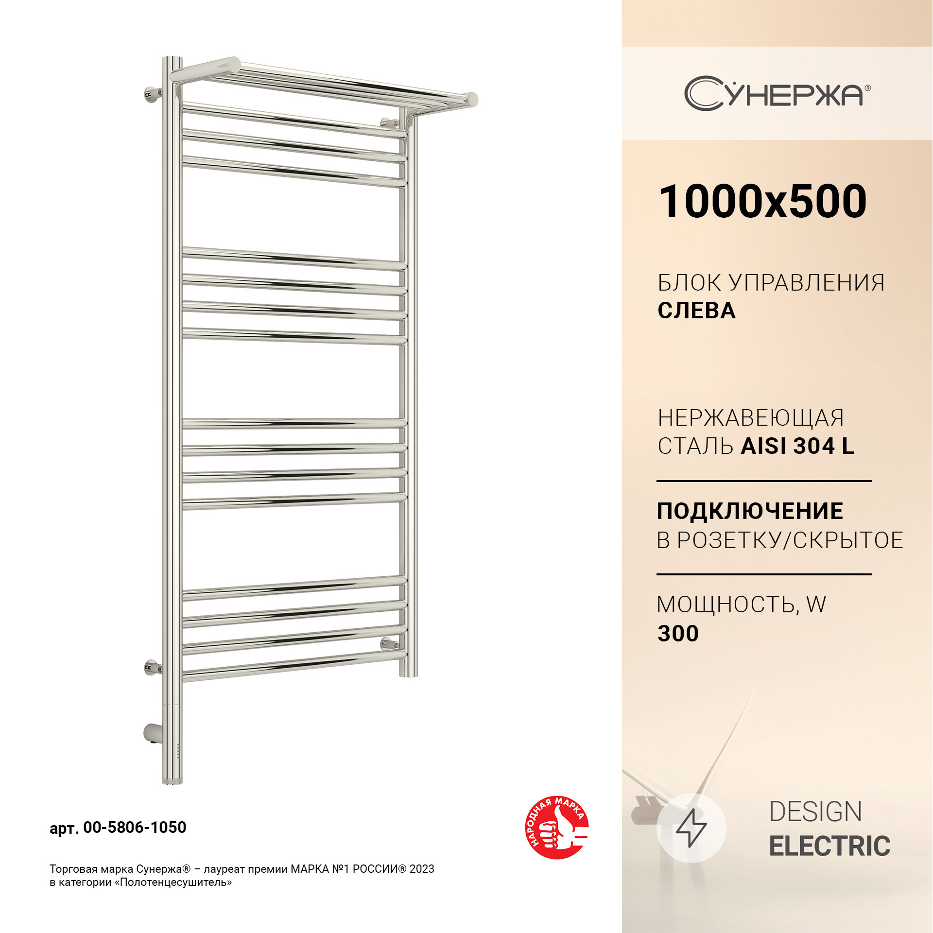 Полотенцесушитель электрический Сунержа Богема с полкой 3.0 1000х500 / МЭМ левый Без покрытия информация: