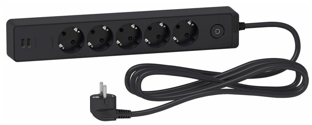 10 цен на "Удлинитель SE Unica Extend Черный 5 розеток 2К+З, кабель 3м, 2 USB"