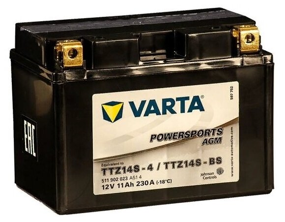 Отзывы на Аккумуляторная батарея POWERSPORTS AGM [12V 11Ah 230A B00] VARTA 511902023 | цена за 1 шт