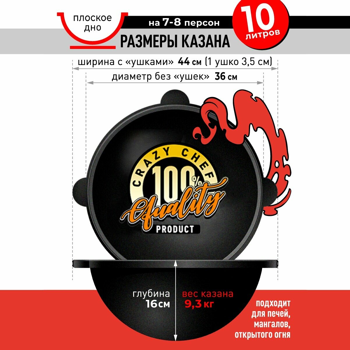 Узбекский казан чугунный Наманганский 10 л плоское дно, черный + специи и книга рецептов в подарок информация: